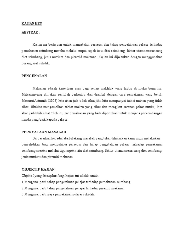By Da_Caroline414 02 Jun 2022 Post a Comment CONTOH KERTAS KERJA. Walaupun hasil kajian menunjukkan yang aspek pemakanan mempunyai nilai min yang tertinggi namun tidak terdapat perbezaan min yang signifikan diantara subskala. Jangan tidak makan karbohidrat.